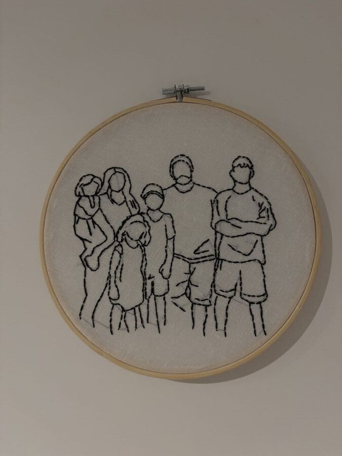 Get a one of a kind, hand embroidered family portrait hoop! This can be used as wall decoration or can simply be leaned against something. This makes a great Mothers Day, Christmas or Birthday gift!